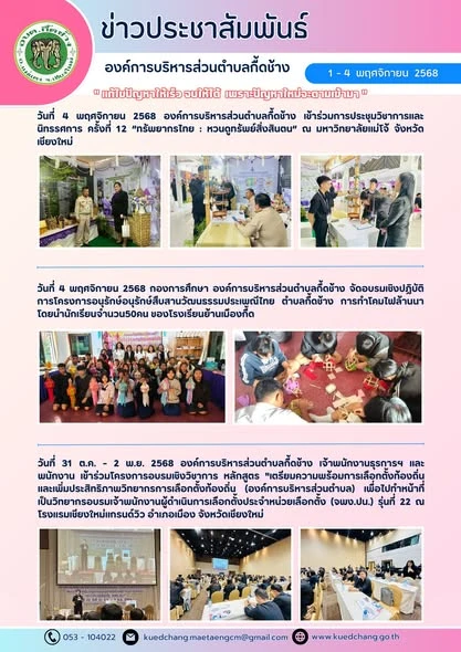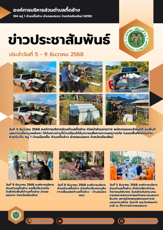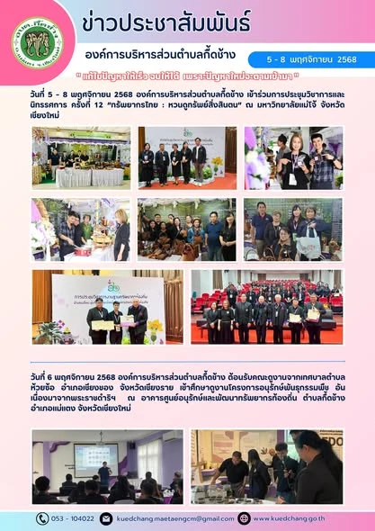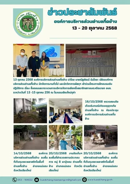 ยินดีต้อนรับเข้าสู่องค์การบริหารส่วนตำบลกื้ดช้าง ติดต่อสอบถาม : โทรศัพท์ / โทรสาร (แฟกซ์) : 053-104022 อีเมล : kuedchang.MaetaengCm@gmail.com , saraban@kuedchang.go.th